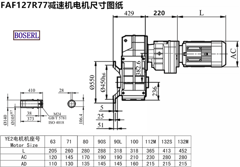FAF127RF77-Y0.12KW減速機電動機安裝尺寸圖紙