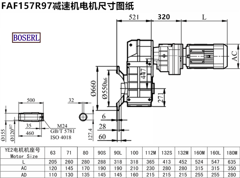 FAF157RF97-Y1.5KW減速機(jī)電動(dòng)機(jī)安裝尺寸圖紙