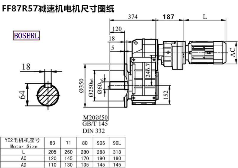 FF87R57DR80M4減速機電動機安裝尺寸圖紙