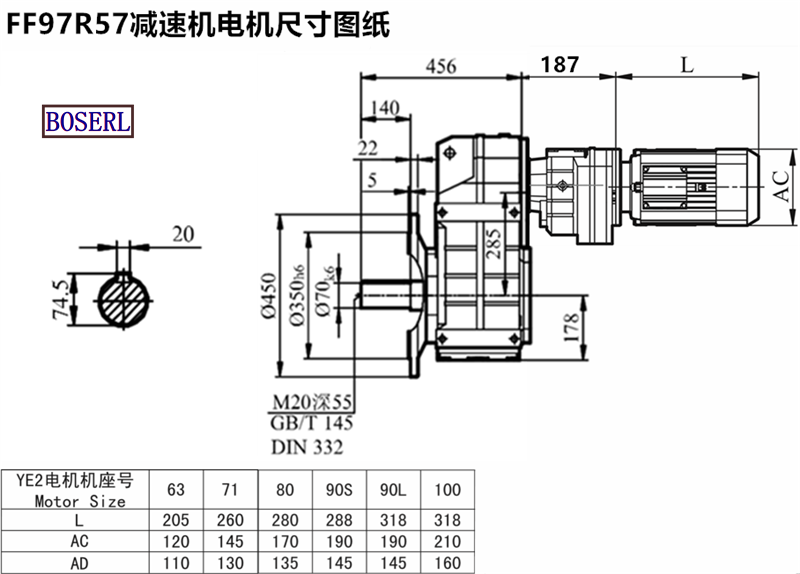 FF97R57DM63MS4減速機(jī)電動(dòng)機(jī)安裝尺寸圖紙