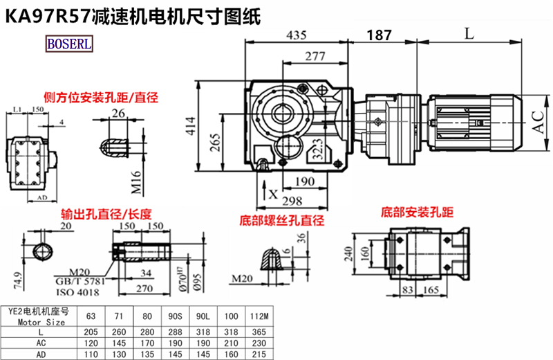 KA97R57DM90M4減速機馬達安裝尺寸圖紙