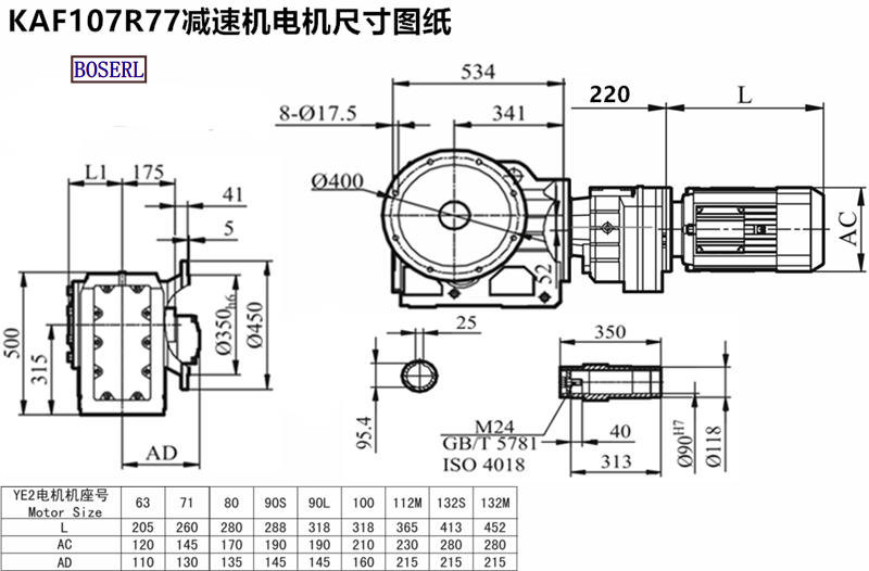 KAF107R77DR100LC4減速機(jī)馬達(dá)安裝尺寸圖紙