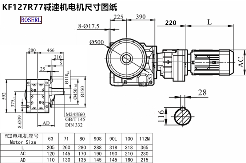 KF127R77DV80M4減速機馬達安裝尺寸圖紙