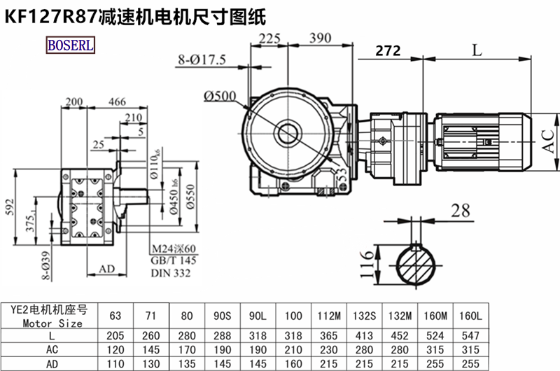 KF127R87DM100LC4減速機馬達安裝尺寸圖紙