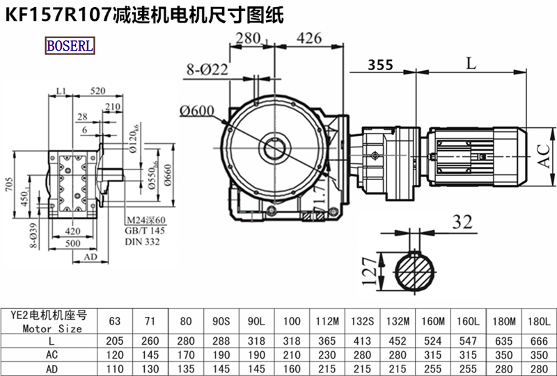 KF157R107DM160M4減速機馬達安裝尺寸圖紙