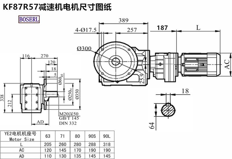 KF87R57DR71S4減速機馬達安裝尺寸圖紙