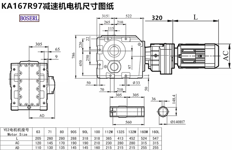 KH167R97DM100M4減速機馬達安裝尺寸圖紙