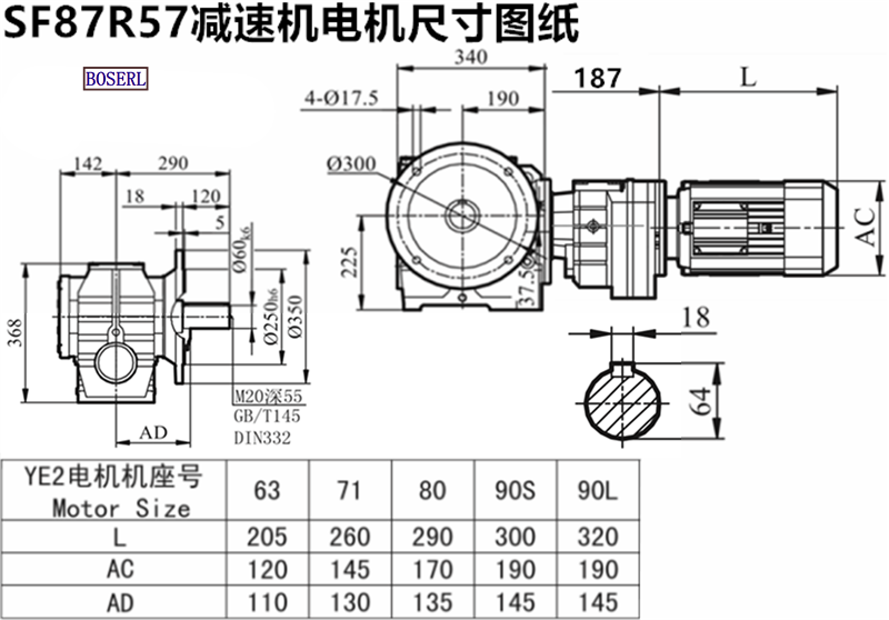 SF87R57DVE90L4電機(jī)減速器安裝尺寸圖紙